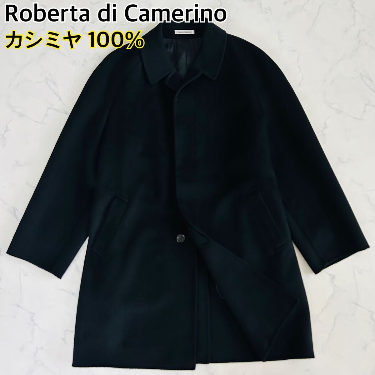 > カシミヤ100% カシミア Roberta di Camerino ロベルタディカメリーノ ロングコート ウールコート ステンカラーコート 比翼 Lサイズ 黒