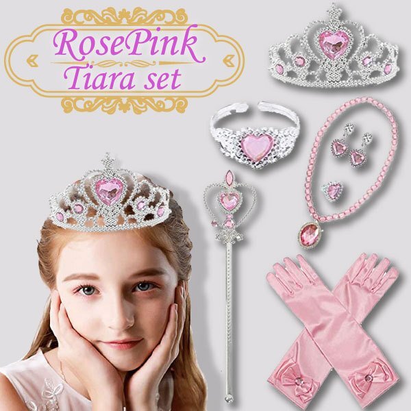 - ローズピンクジュエリー セット ディズニー キッズ 子供 ハロウィンコスプレ お姫様 女の子 魔法 誕生日 ティアラ ステッキ ネックレス