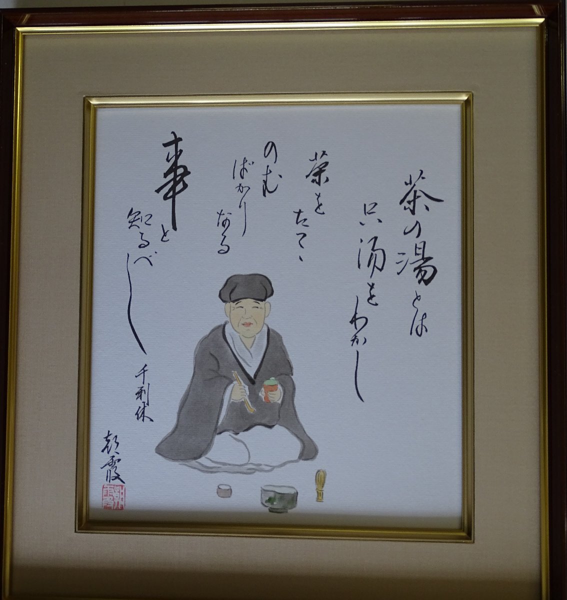 - ・作者:松浦朝露・画題:千利休・技法:色紙絵(手描き)-NO-6-1-8.8