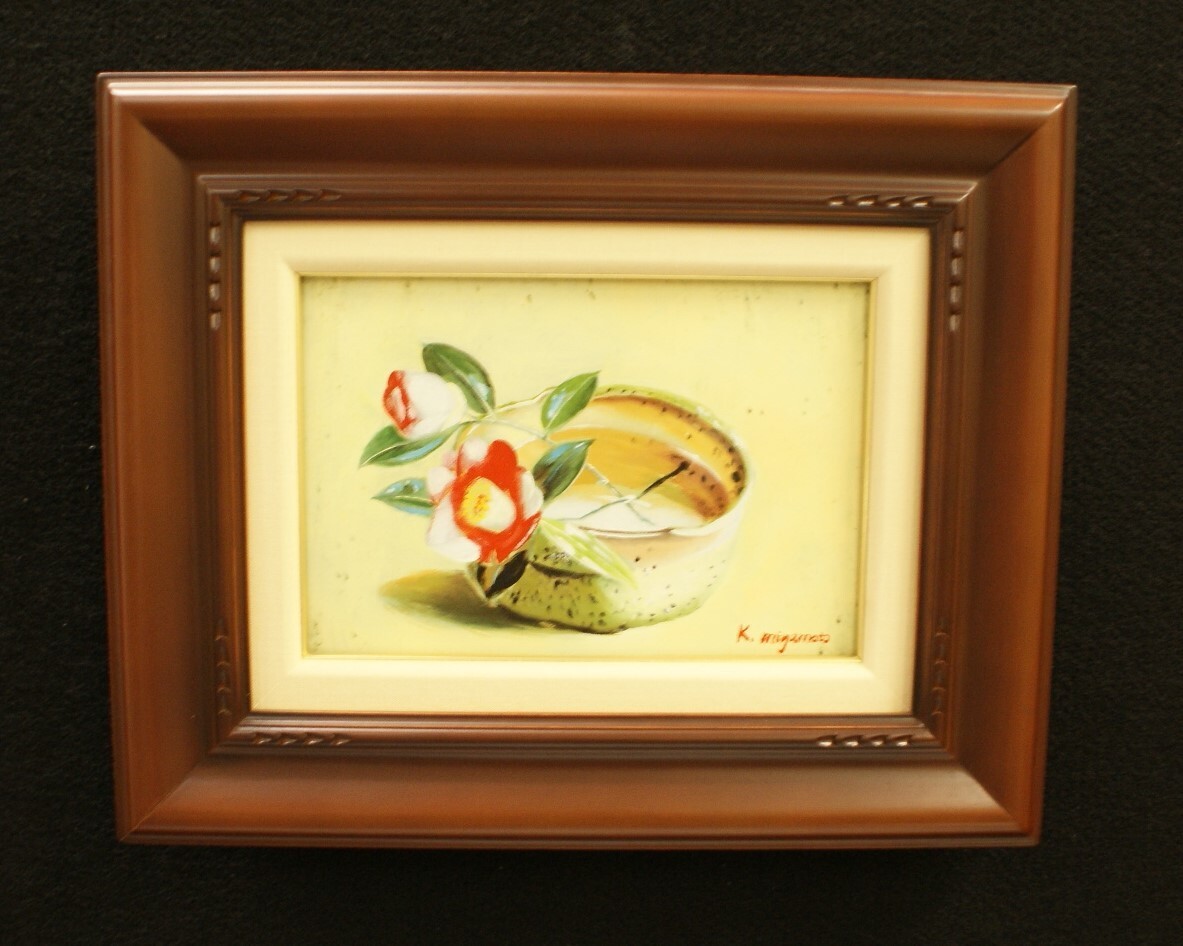 - ・作者名: 宮本京子 ・画題: 志野焼と椿 ・技法:油彩画 (原画)〈160〉(A1-HIO-R4-6-22-25.8)