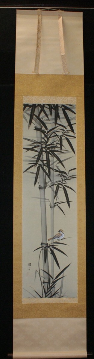 - ・作者名: 星野国光 作 ・作品名:「墨竹に雀」・技法: 掛軸(直筆) (B2-HIO-R4-6-19-28.5)