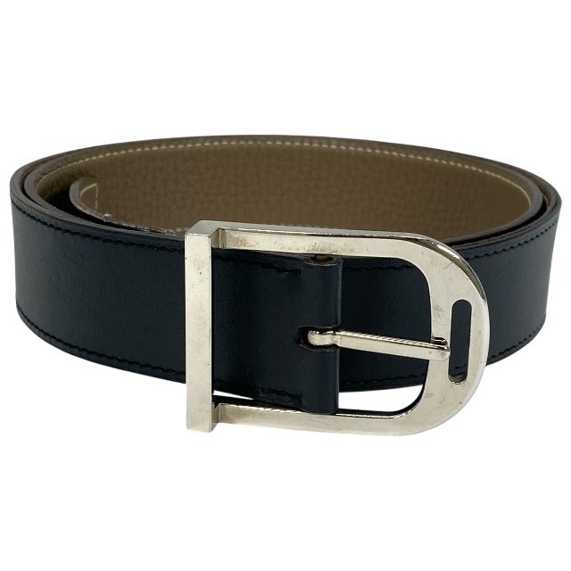 - エルメス ベルト □M刻印 シルバー金具 バックル レザー ブラック シルバー ベージュ HERMES