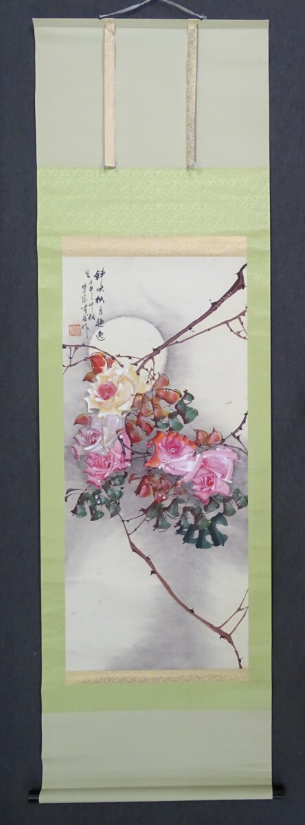 - 品名:掛軸 源海 作「ばら之図」(日本画)