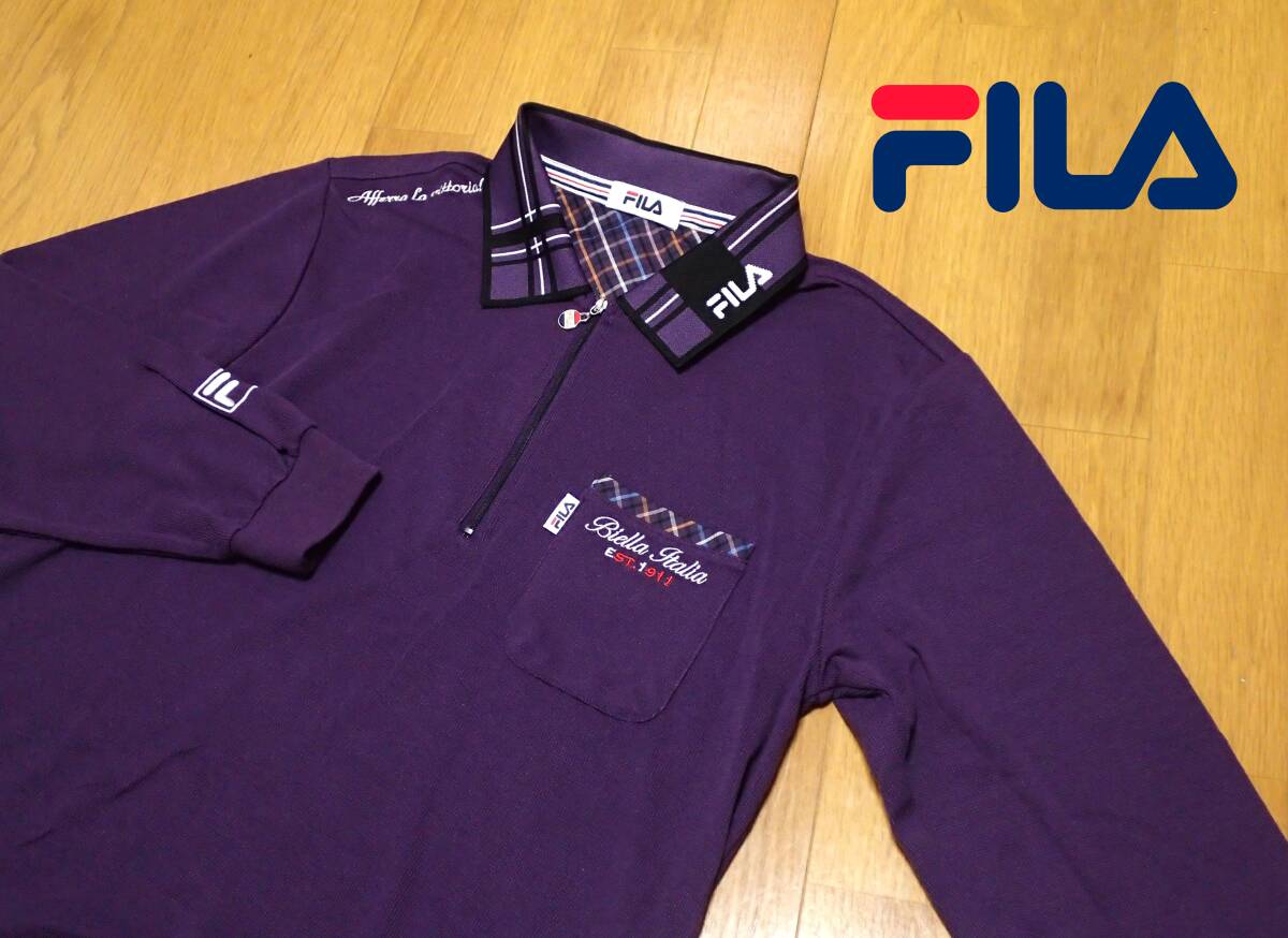 > ☆FILA ☆フィラ ☆スポーツウエア ☆ゴルフウエア ☆ハーフジップ ☆長袖ポロシャツ ☆パープル ☆メンズ ☆L