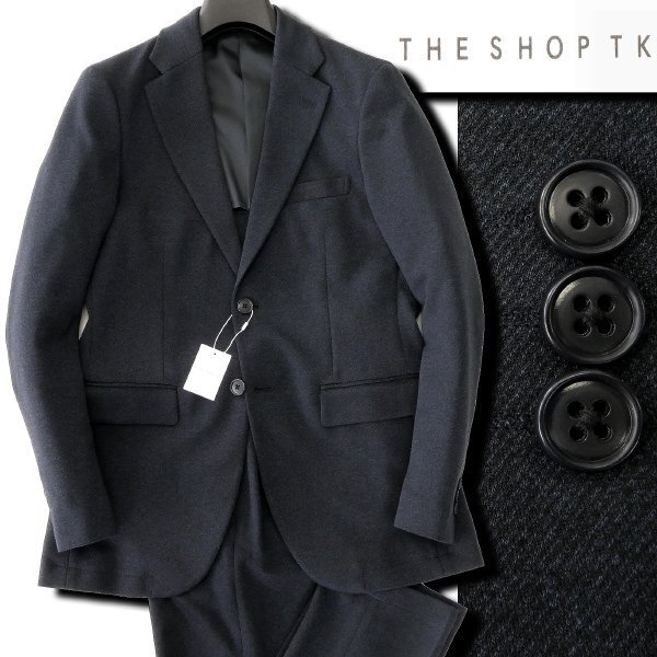 > 新品 タケオキクチ カルゼ ポンチ ジャージー セットアップ スーツ L 紺 【J59104】 THE SHOP TK ウールライク メンズ ストレッチ