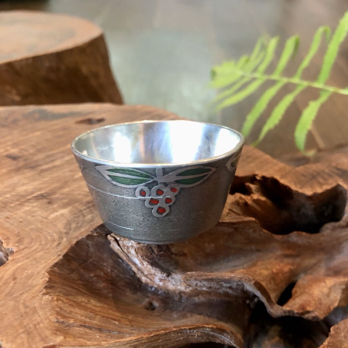 - 本錫 南天 猪口★盃 杯 酒器 晩酌 ぐい呑 古民家 粋 レトロ アンティーク 風雅 膳 風流 風情 数奇 侘び寂び 吉祥 縁起 ビンテージ 工芸
