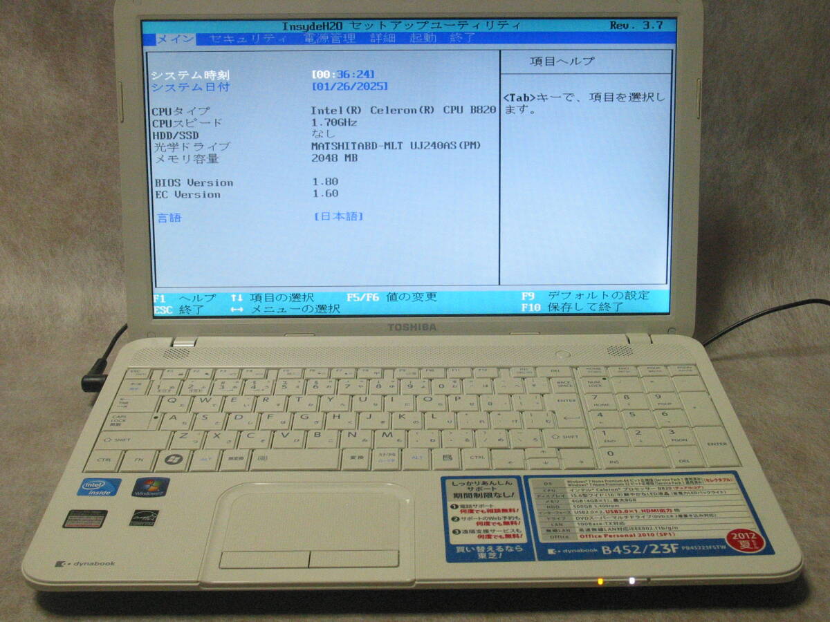 > 東芝ノートPC dynabook B452/23F celeron-B820 ジャンク品でお願いします