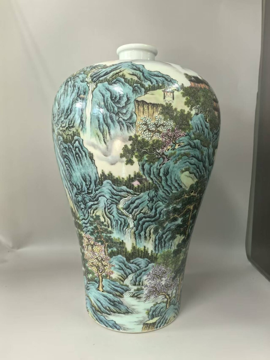 - 中国古美術 清時代 雍正 粉彩 山水 花瓶 陶磁器 骨董 古玩 時代物 中国美術 古美術 骨董品 唐物 当時物 js58