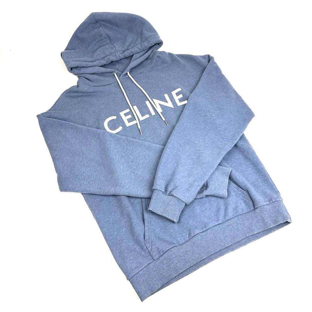- 【美品】CELINE セリーヌ パーカー ロゴプリント ルーズ フーディ S プルオーバー スウェット フード コットン ブルー 水色 青系 男女兼用
