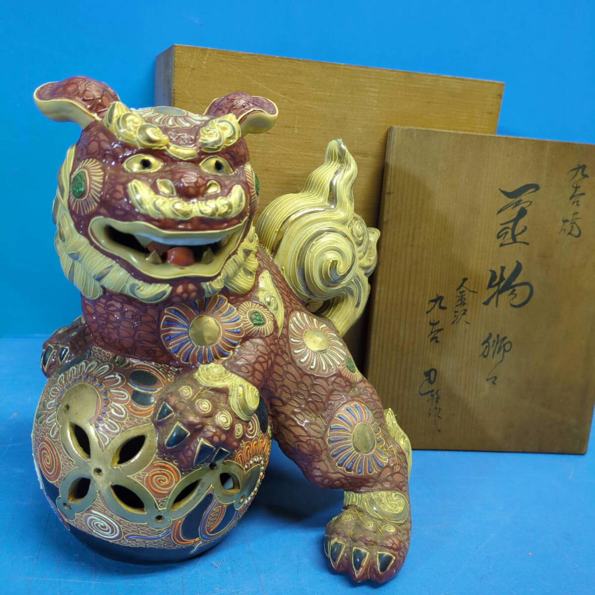 - kankando「九谷焼 置物 獅子 高さ約21cm 共箱」丸義繊維株式会社記念品《真作》