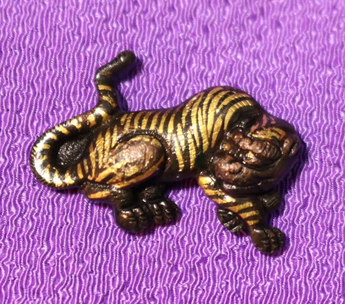 - 猛虎小景図~古銅に毛彫り、金彩入~刀剣片目貫 刀装具