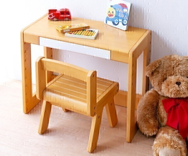 > ★美品★木製キッズデスクチェアセット 子ども机 収納棚本棚★10段階高さ調節可キッズ家具★ナチュラルベージュ★組立済★幅60cm