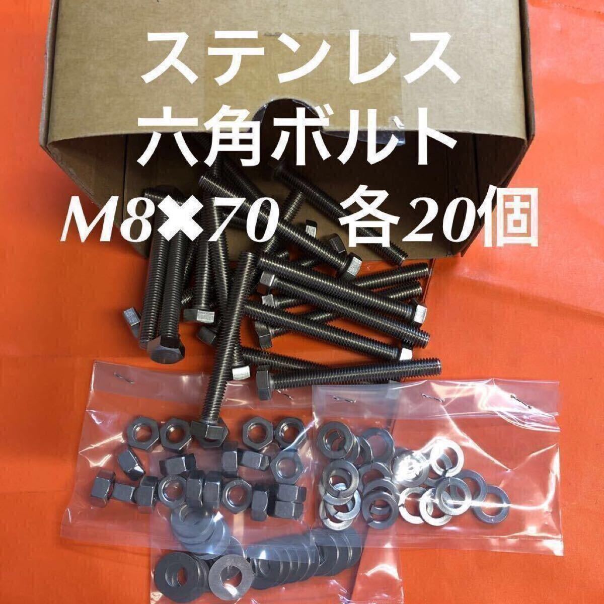 > ★送料込★ステンレス 六角ボルト M8×70 ナット・平ワッシャー・スプリングW 各20個 ステン六角ボルト