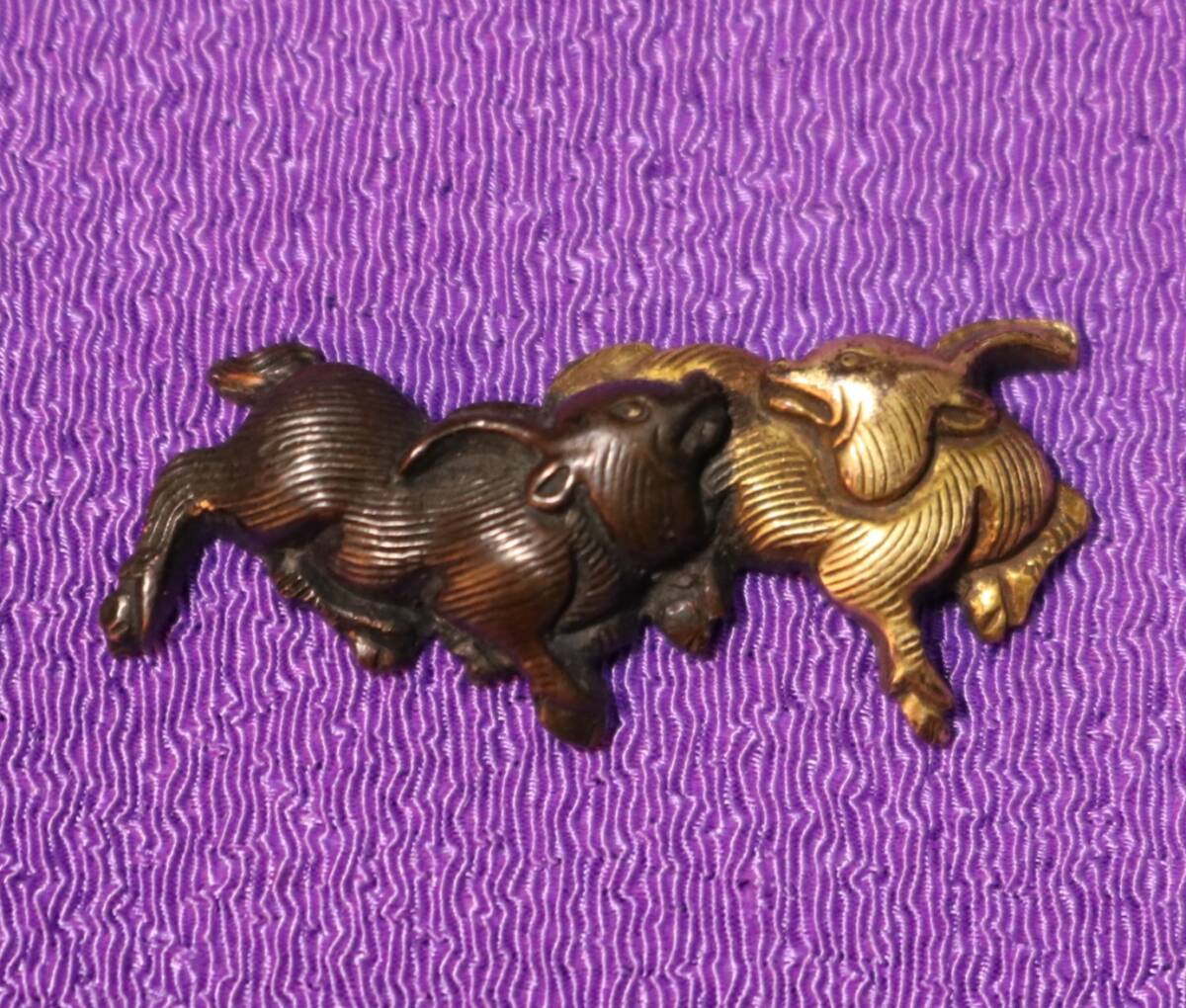 - 猛禽二体図~古銅、刀剣片目貫 古金工 刀装具