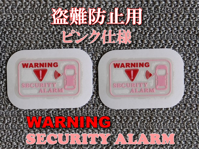 - ★盗難防止 セキュリティーアラーム ピンク仕様ステッカー2枚組 内貼り 外貼り 選択可