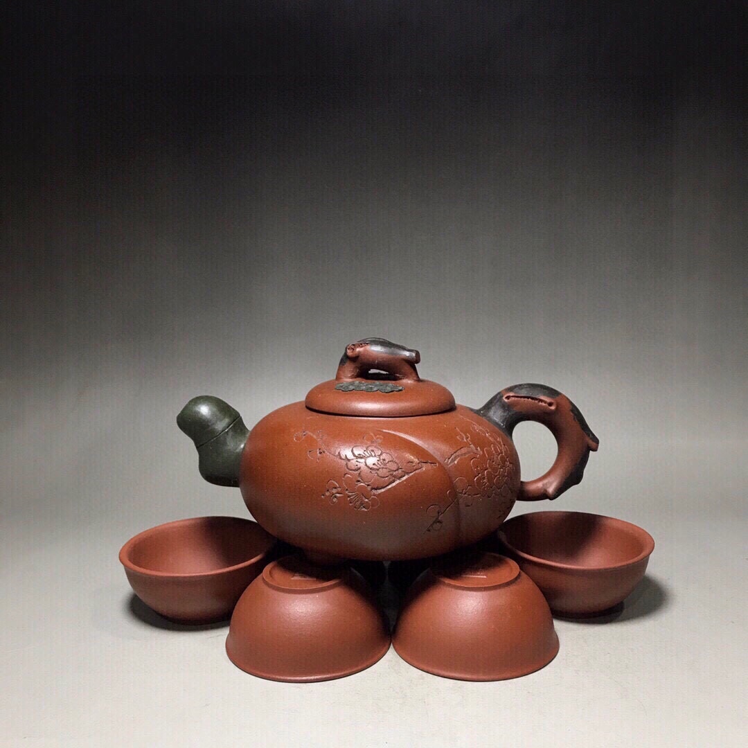 - 【超珍館蔵】紫砂壺 歳寒三友壺 蓉款 紫砂 茶具 茶道品 置物 賞物 古賞物 古董品 古美術品 時代物 旧家蔵出 稀少珍蔵品