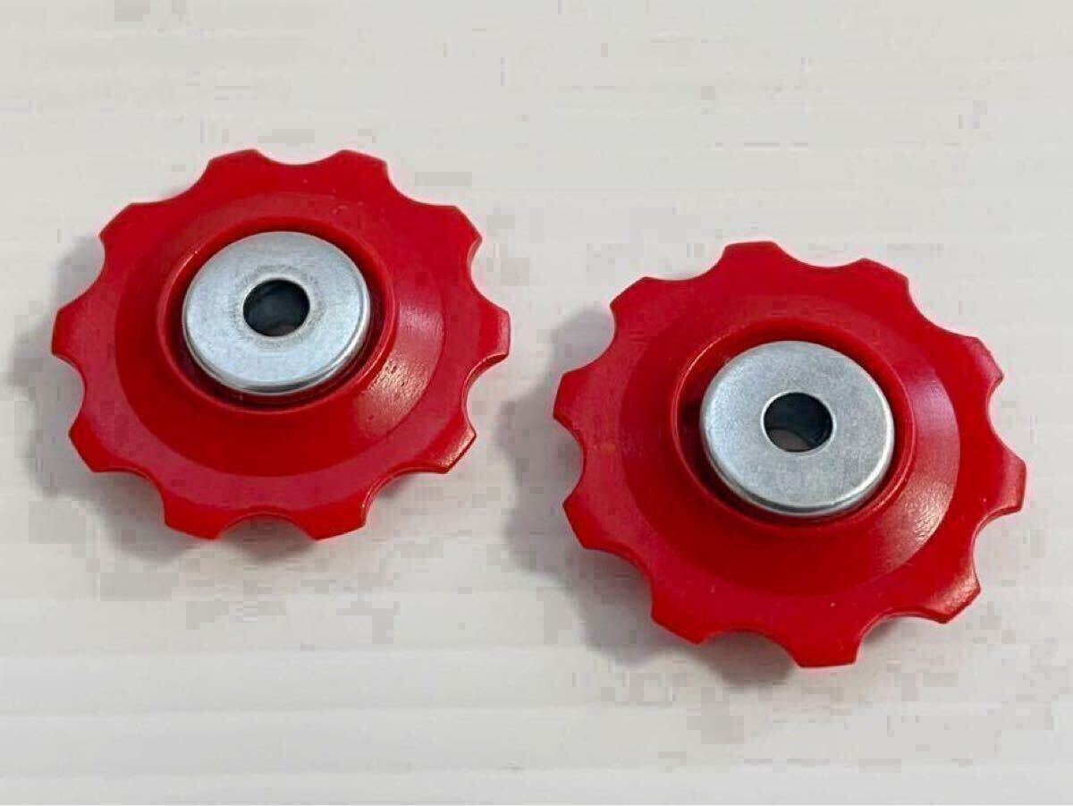 - 古いリアディレーラー用 10Tプーリー 2個 セット レッドカラー