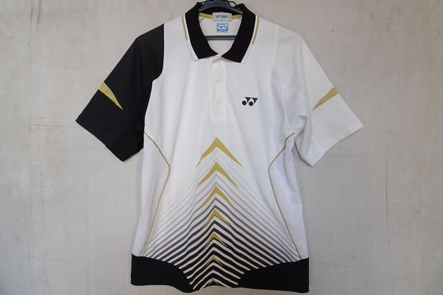 - YONEX/ヨネックス/襟付半袖シャツ/ユニフォーム/Very Coolタグ/テニス/ゴールドパイピング/黒/ブラック/白/ホワイト/Mサイズ(10/2R7)