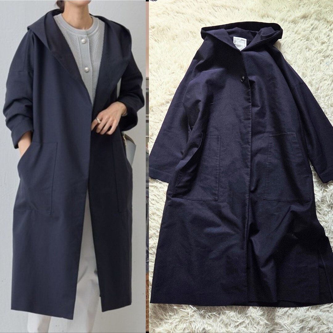 - 近年 美品 ビアズリー BEARDSLEY フードロングコート モッズコート ブルゾン ネイビー 定価47300円