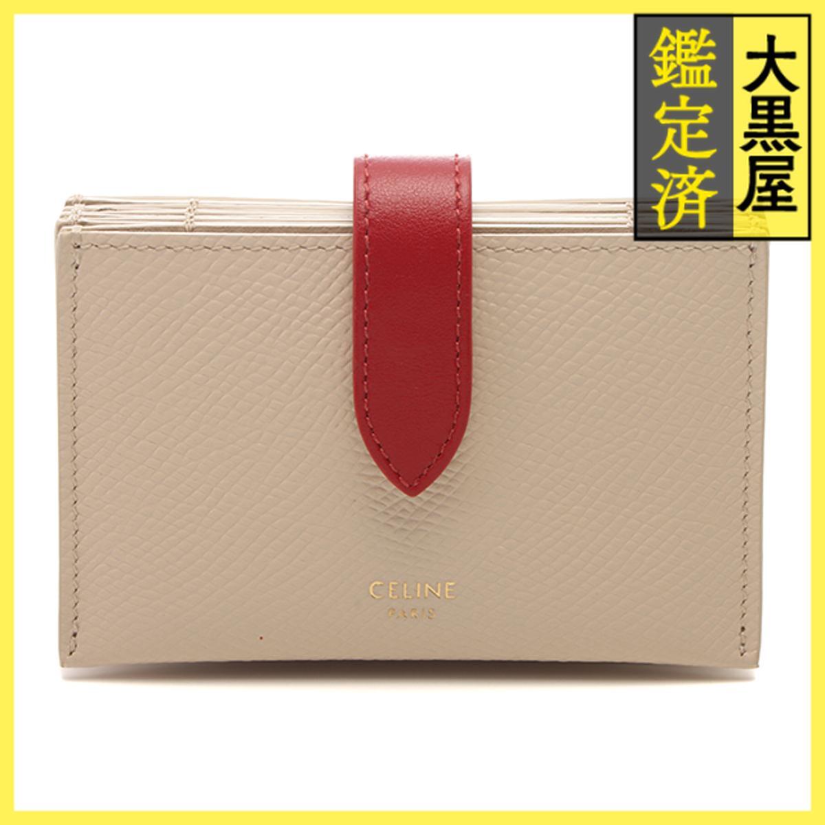 - CELINE セリーヌ アコーディオンカードホルダー ベージュ/レッド カーフ 10B693BRU