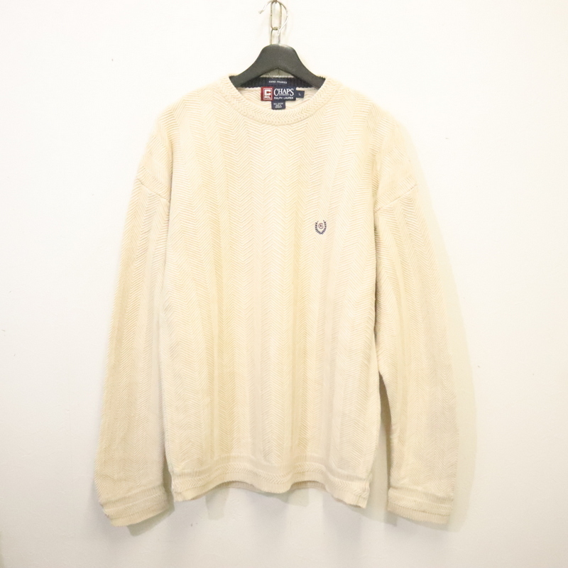 > L67 90sビンテージ チャップスラルフローレン コットンニットセーター■1990年代製 表記Lサイズ アイボリー ししゅう ワンポイントロゴ