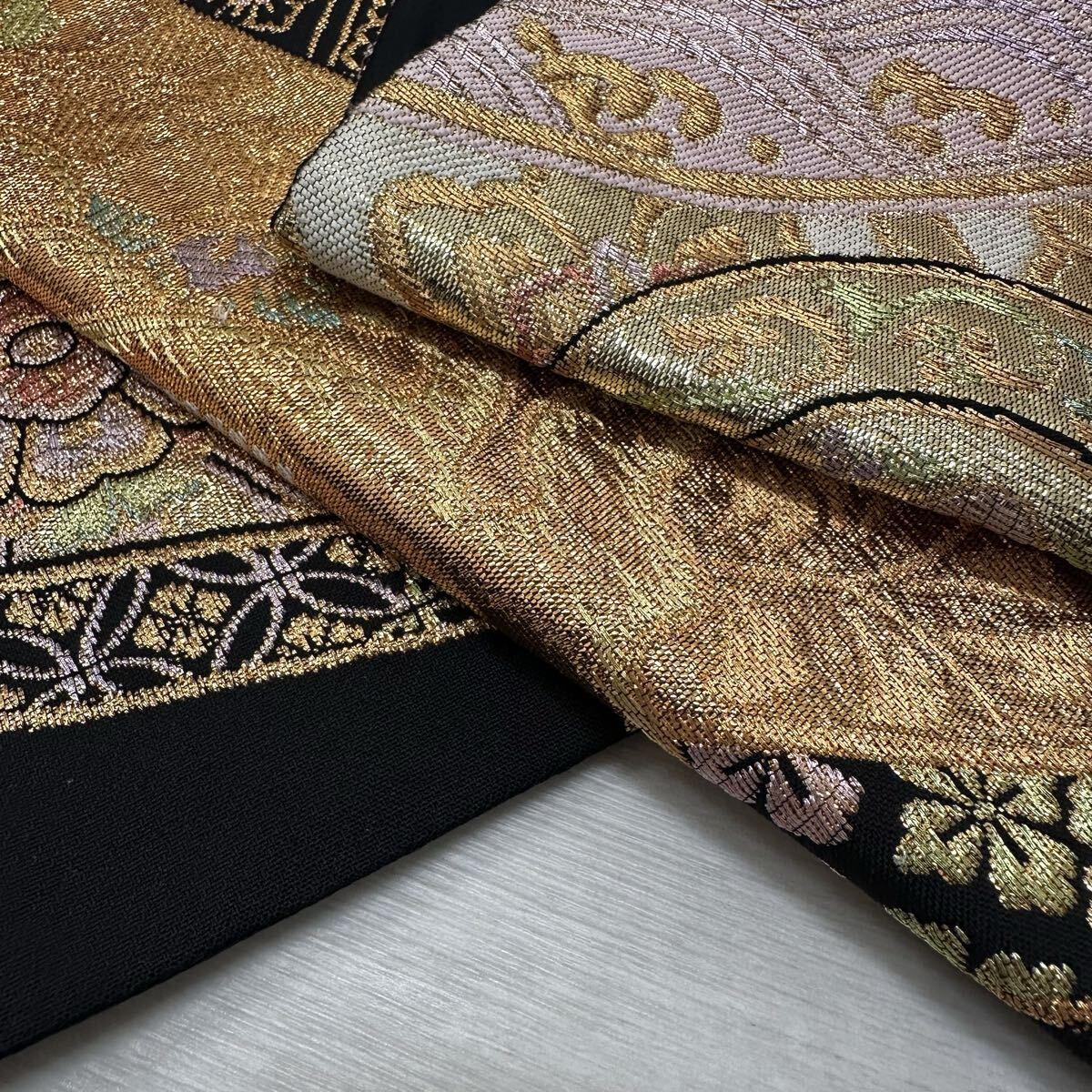 - 袋帯 黒地 正倉院模様 煌びやか 正絹 着物 W-4574