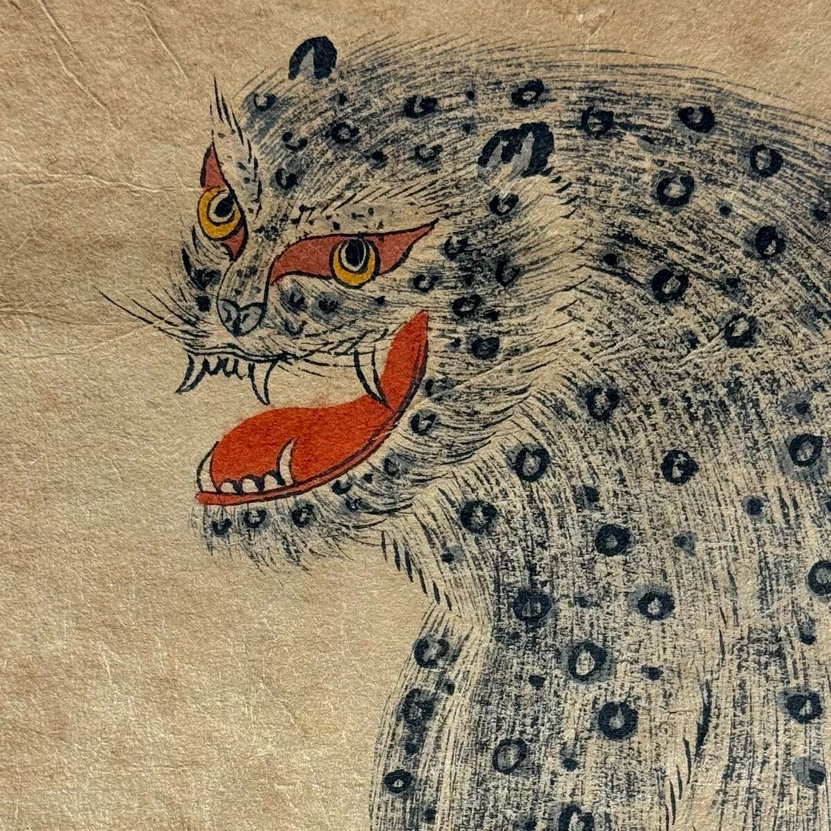- 朝鮮美術 李朝 朝鮮民画 猛虎図 紙本 肉筆 水墨画 虎絵 めくり 掛軸 屏風 古画