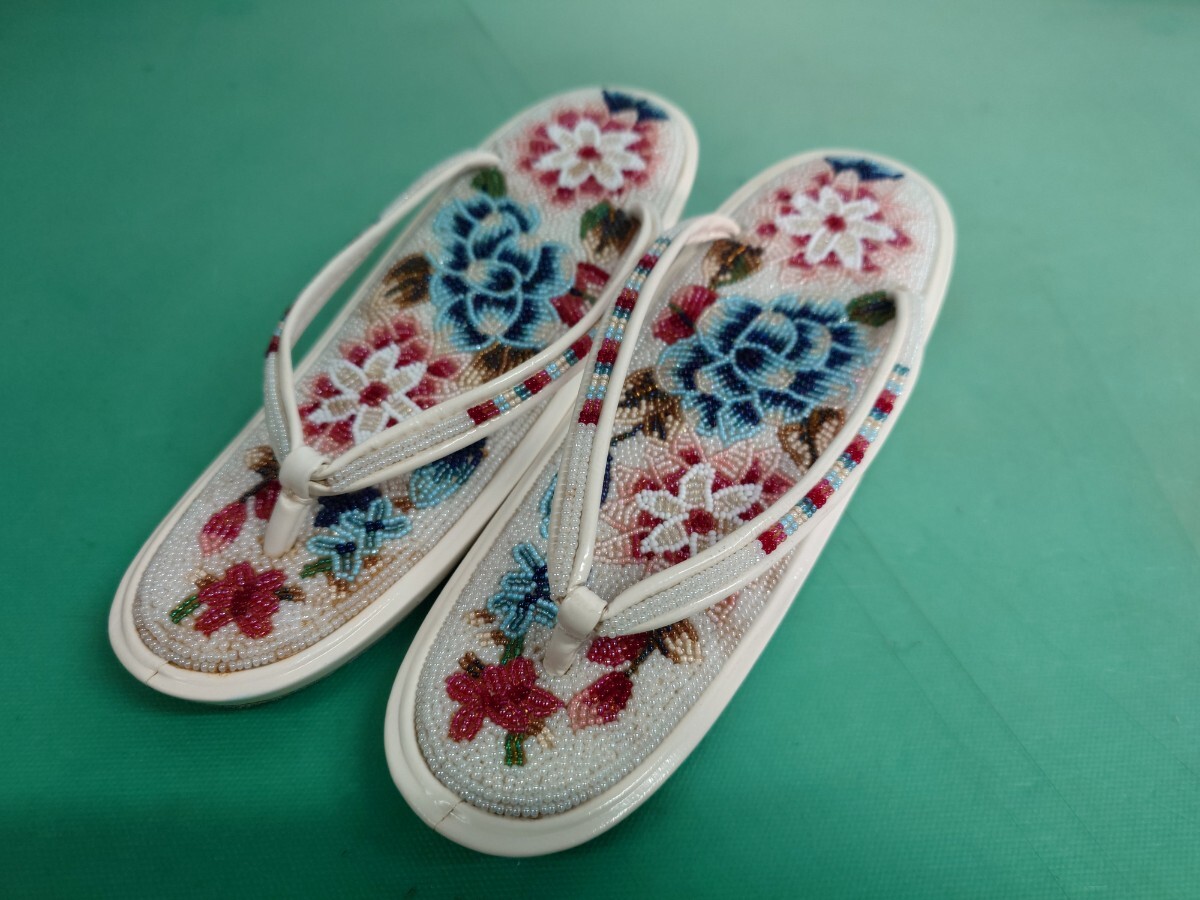 - ● 総ビーズ 作り 昭和レトロ ヴィンテージ ビーズ細工 花模様 フラワー デザイン 草履 素敵な 花柄 和装 洋装 多色性 中古 ③