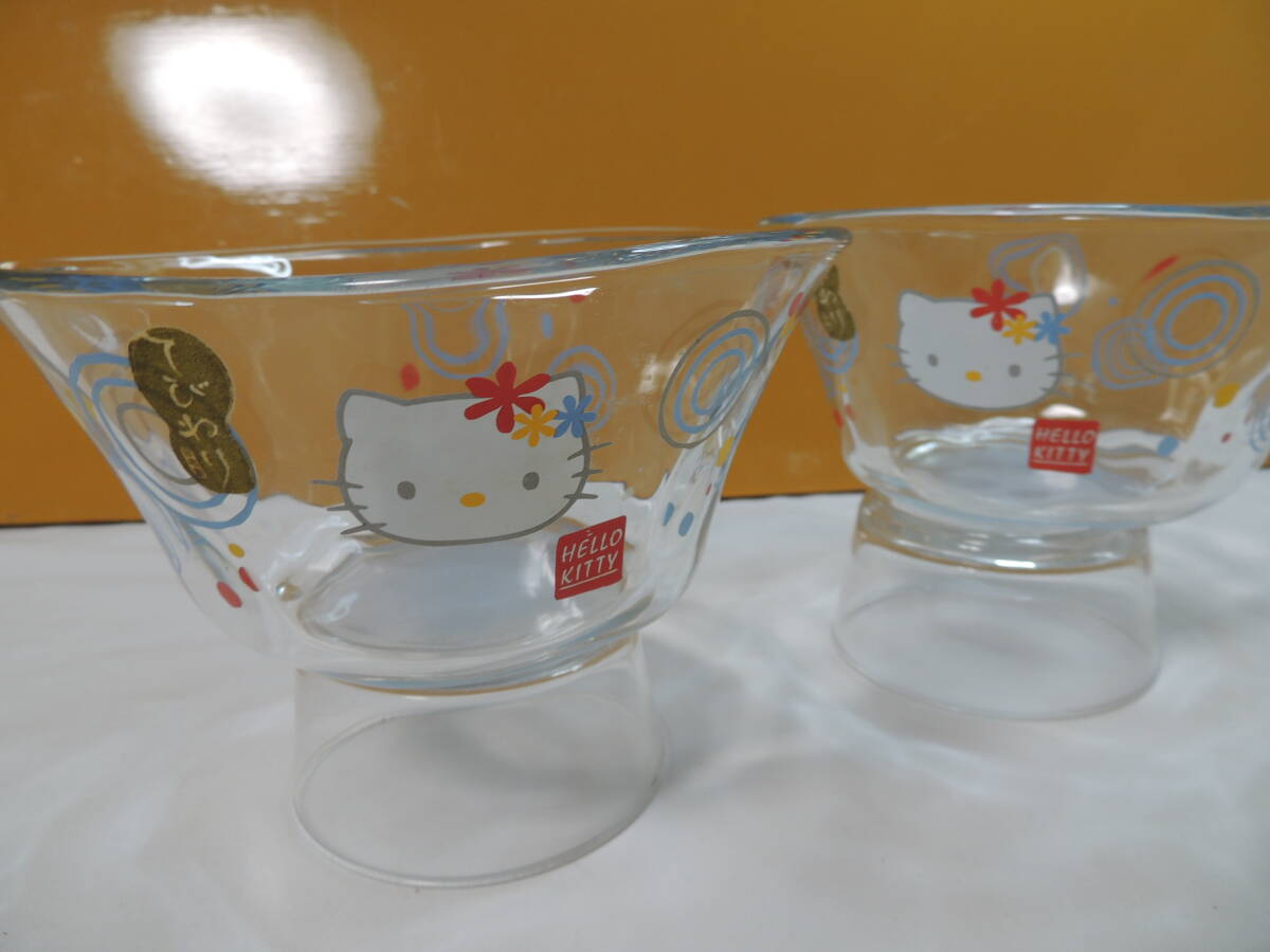 - 【サンリオ】ハローキティ てびねり ガラス製 そうめん鉢 2点セット【ジャンク品】