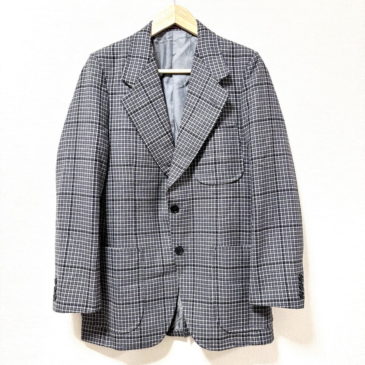 > レトロコーデに◎【D'URBAN】ダーバン ブレザー テーラード ジャケット ウール 秋冬 チェック柄 2B 古着 グレー メンズ 25 S 相当/Y36538SS