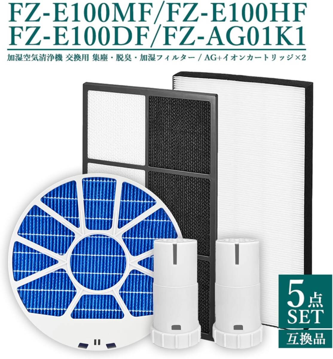 - 【5点セット】FZ-E100MF(枠付き) FZ-E100DF FZ-E100HF シャープ加湿空気清浄機用 集塵脱臭加湿フィルターセット FZ-AG01K1 イオンカート