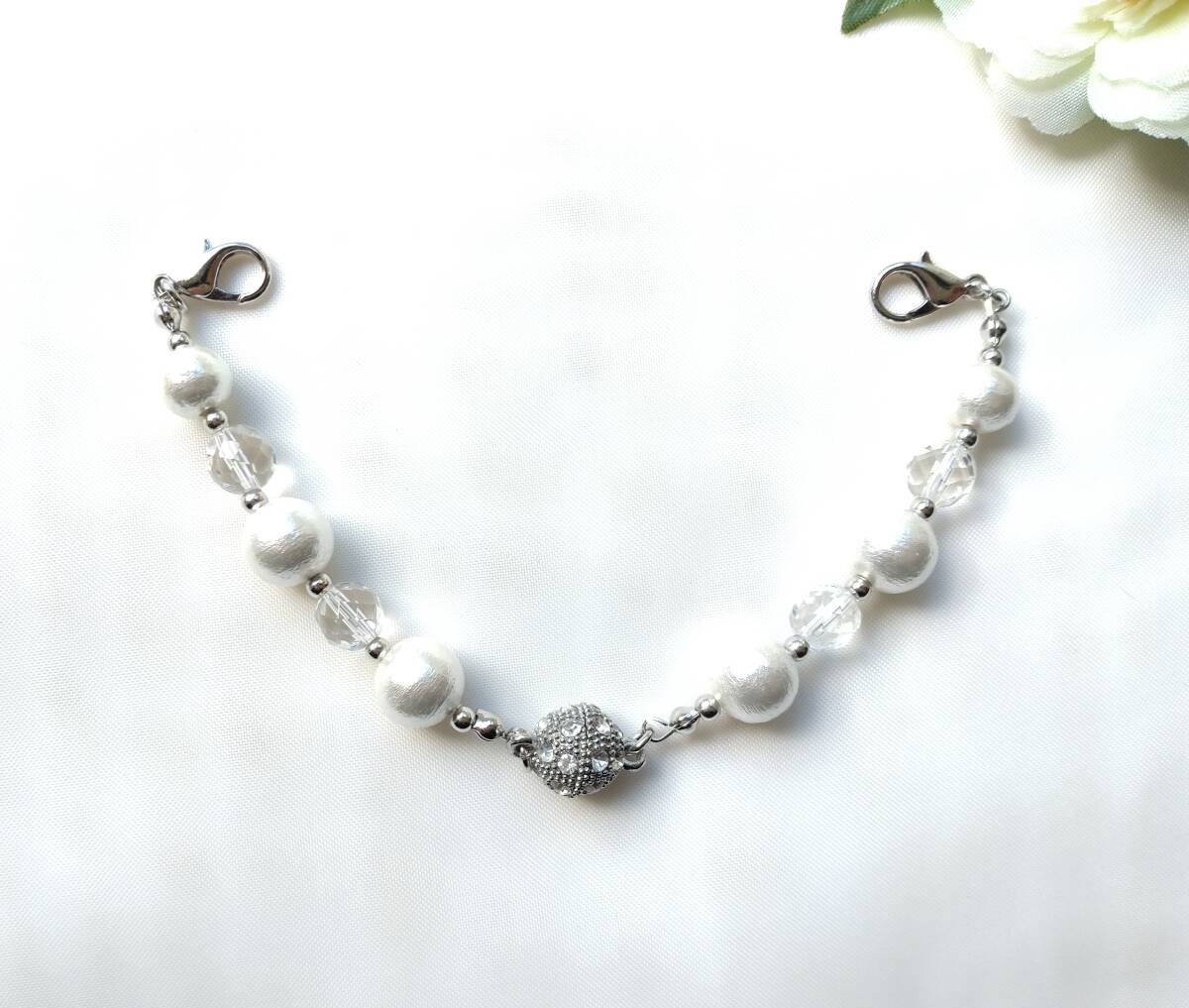 - マグネット羽織紐 天然石水晶&コットンパール 羽織り留め