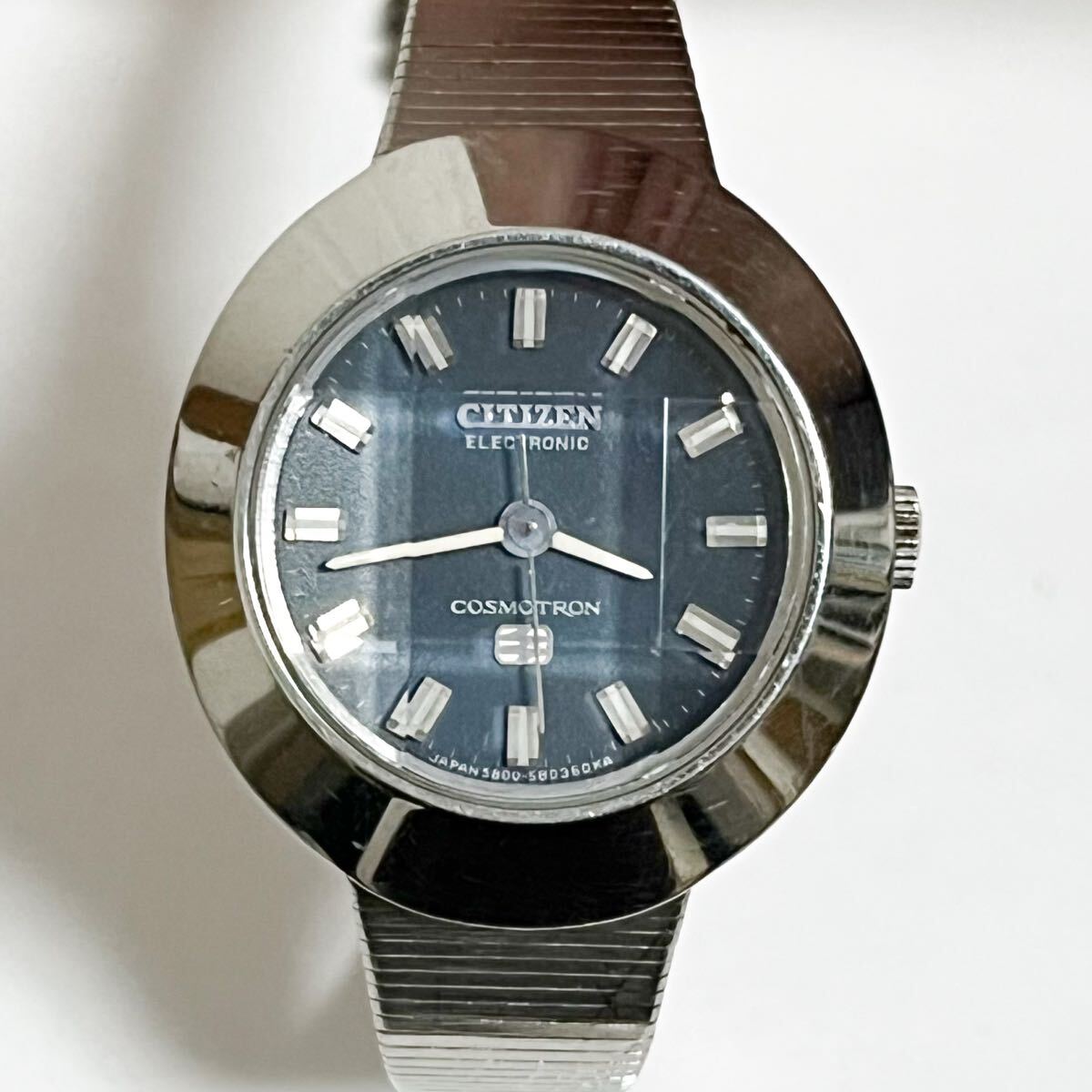 - 和851★ CITIZEN COSMOTRON ELECTRONIC シチズン 腕時計 ウォッチ 3針 4-580257 ネイビー メタルバンド レディース