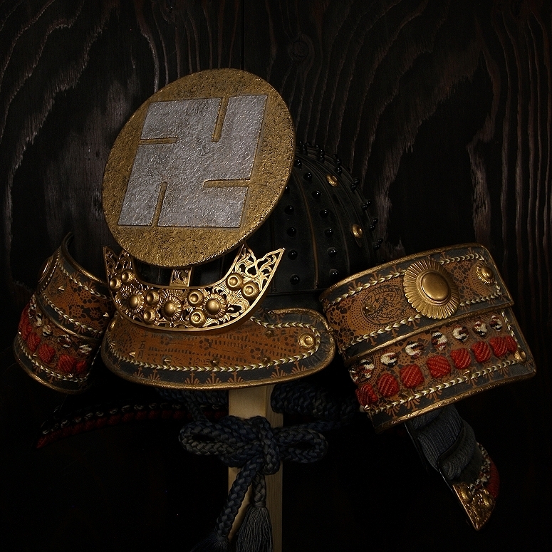 > 左万字 金塗 木製 前立 前立て オス 甲冑 兜 鎧兜 検/蜂須賀 小六 正勝 仁王 samurai armour 24k a1011ginma