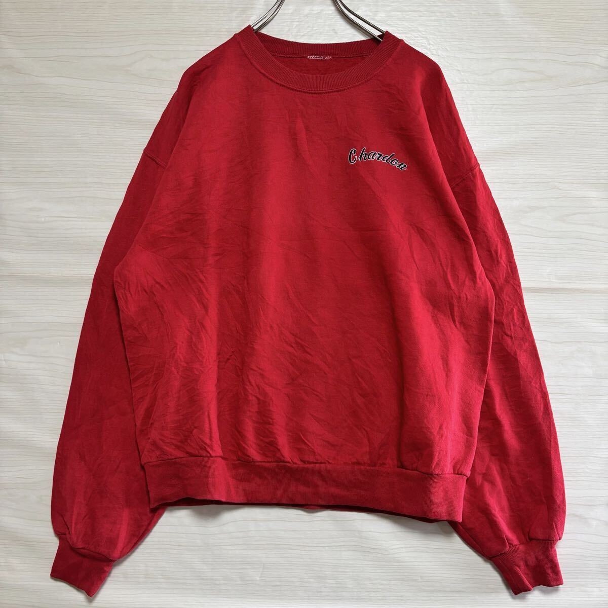 > VINTAGE ヴィンテージ スウェット トレーナー ワンポイント ロゴ刺繍 クルーネック サイズL レッド 赤 コットン メンズ トップス (30)