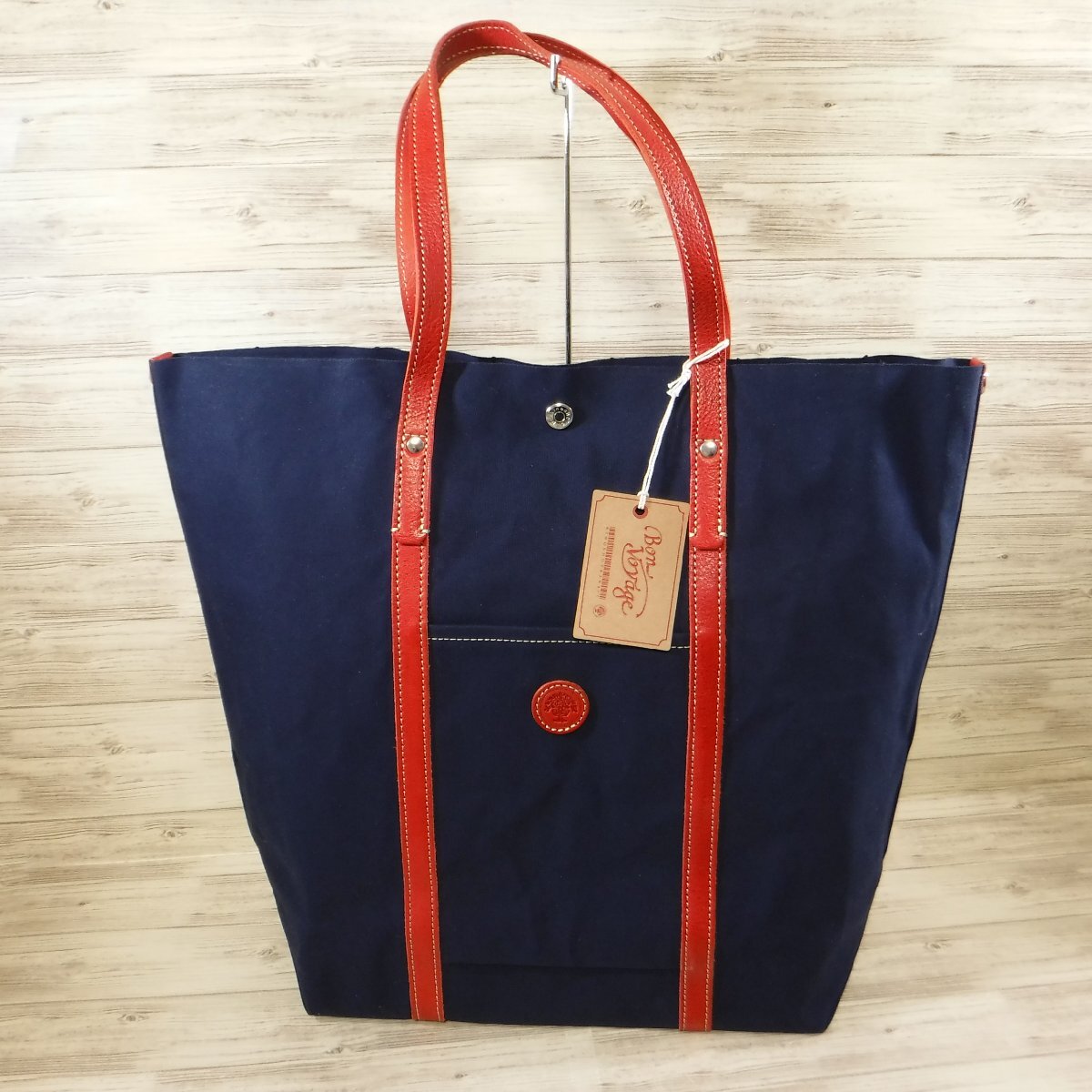 - BB684 木の庄帆布 定価1万6280円 新品 栃木レザー & 帆布 セルヴィッチ トートバッグ 大容量 B4 日本製 ネイビー × 赤 メンズ レディース