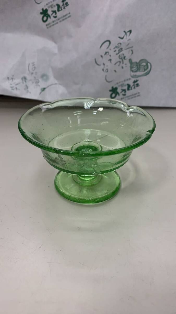 > S0601→ 昭和レトロ 緑色ガラスの氷コップ 古道具 アンティーク キャンディポット 和硝子 駄菓子瓶 吹きガラス ガラス工芸(0)