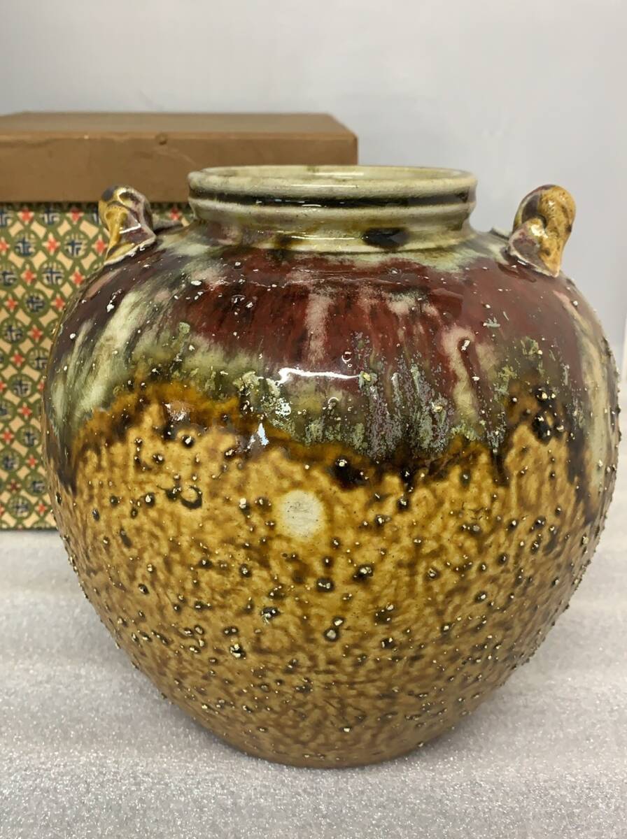 > C1065→信楽焼 レトロ 陶器 三彩 壺 花瓶 花器 花入れ 花立 花生け オブジェ 中古