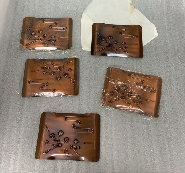 - A030→銅 梅 四方皿 銅製 五客 茶道具