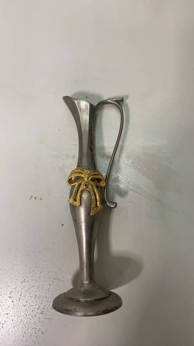 - S1-8-4→一輪挿し 花瓶 金属製 引き出物 中古 錫?