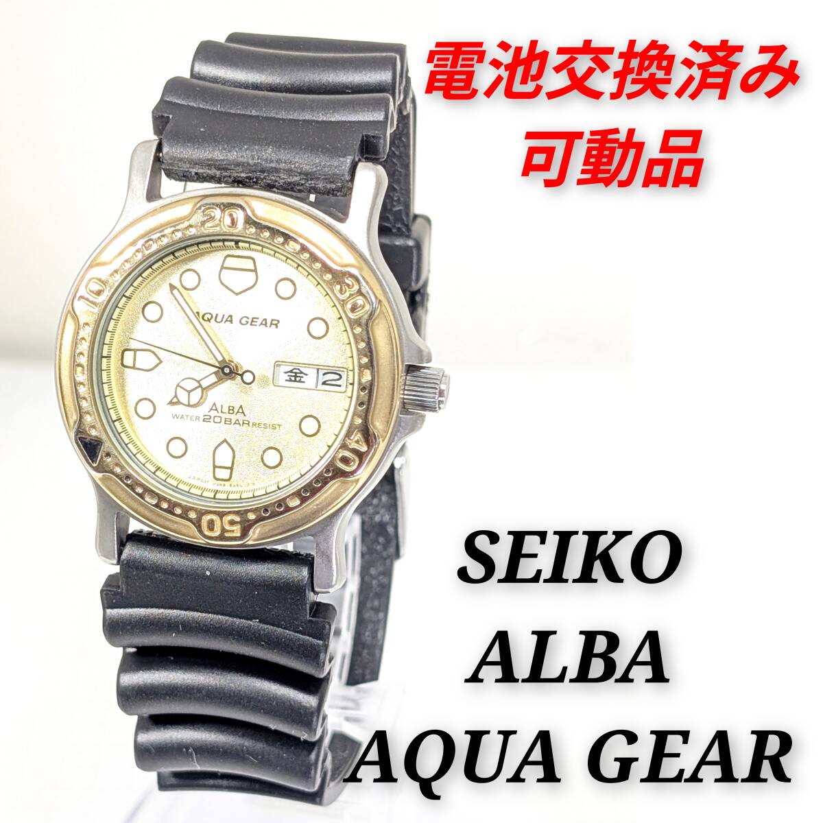 - セイコー ALBA AQUA GEAR メンズ 電池ベルト交換済み稼働品 Z-05