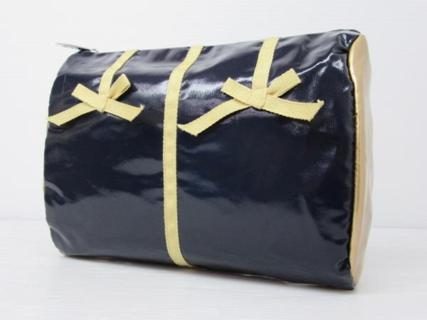 - TUNIC チュニック コスメポーチ リボン ネイビー×ゴールド 中古 〇YR-00839〇