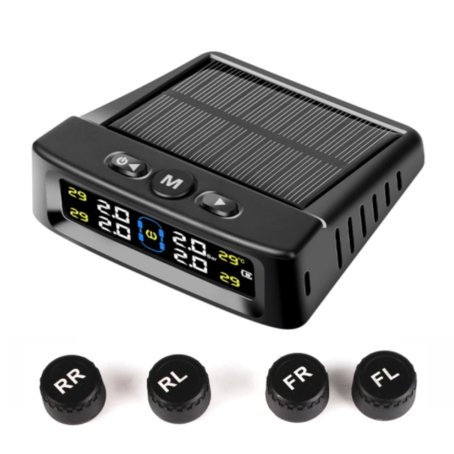 - タイヤ空気圧センサー TPMSモニター 温度測定 ソーラー充電&USB充電対応 監視システム アラーム 振動感知 LCDディスプレイ空気圧モニター