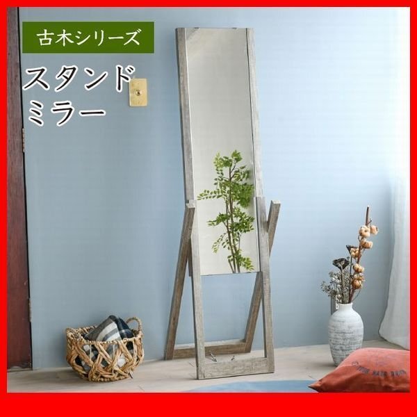 - 姿見★古木シリーズ スタンドミラー 姿見 全身鏡/シンプルデザイン アンティーク風/簡単組立/ナチュラル/激安 限定品/zz