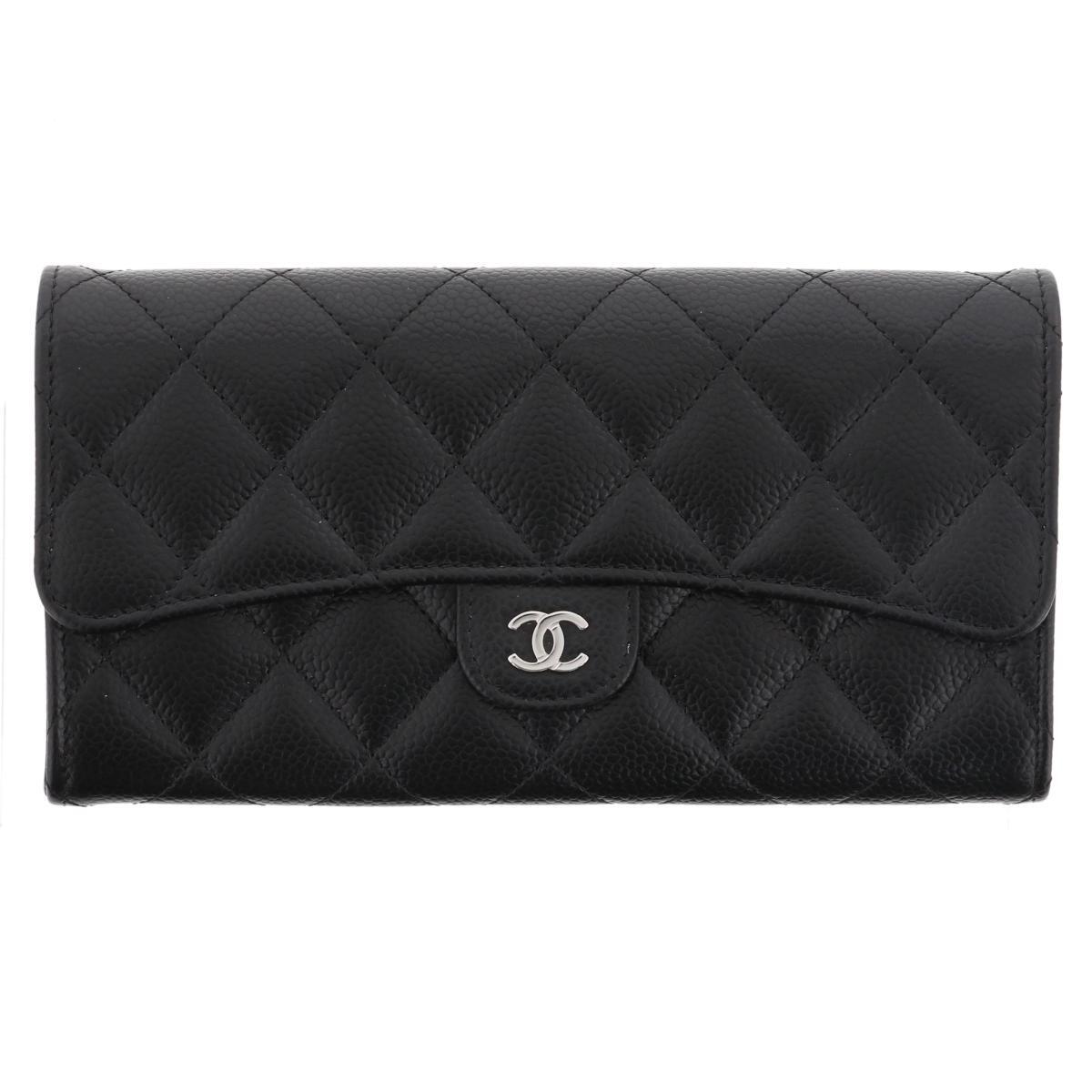 - 【極上品】CHANEL (シャネル) クラシック ロング フラップ ウォレット 財布 長財布(小銭入有) Caviarskin Black AP0241 unused:S【中古】