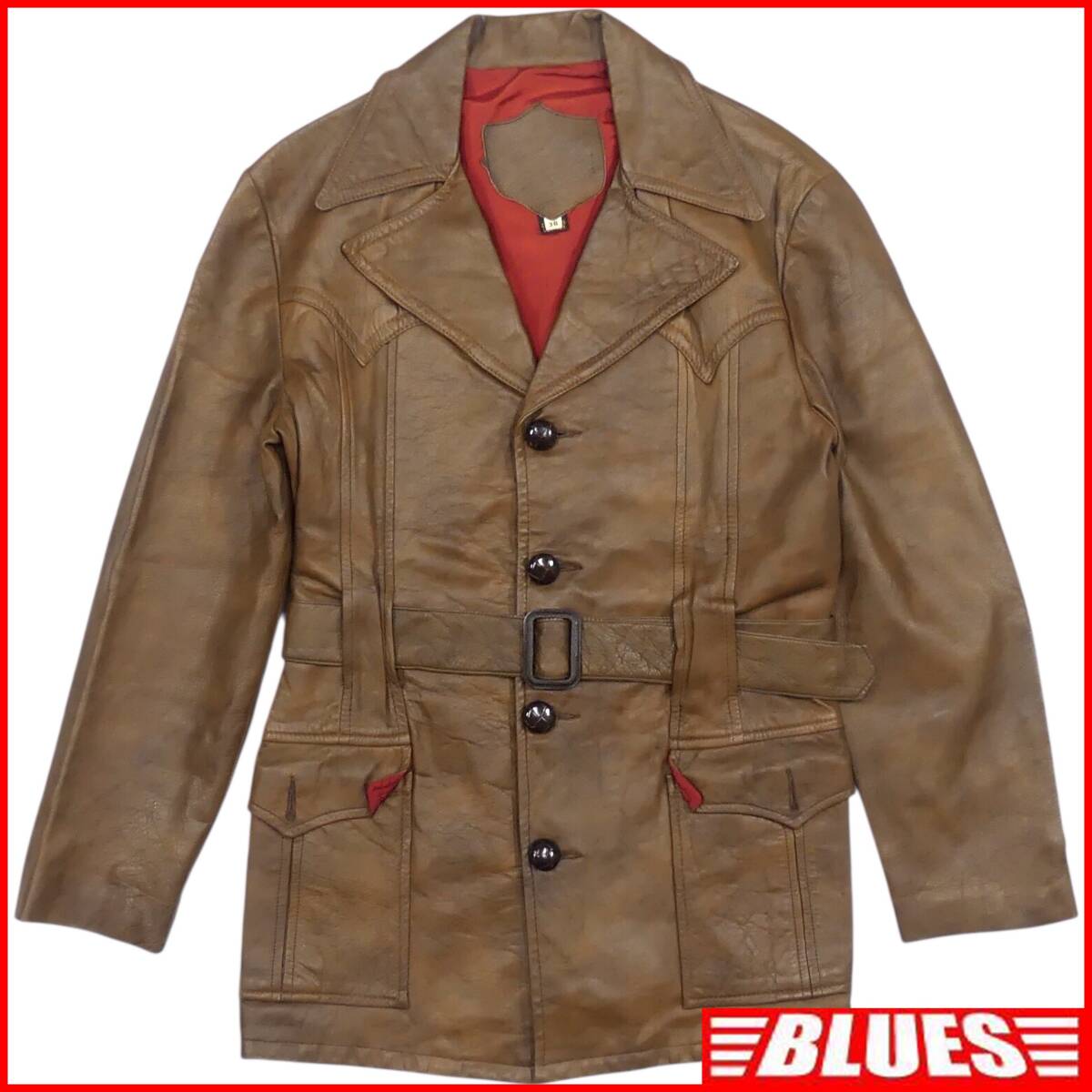> 即決★CABRETTA LEATHER★メンズ M トレンチコート カブレッタレザー 38 茶 チェスターコート 本革 ジャケット 本皮 ハーフコート
