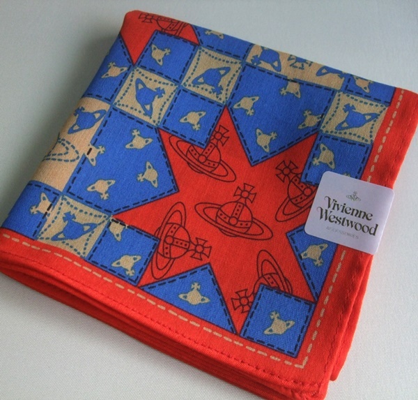 - Vivienne Westwood ヴィヴィアン・ウエストウッド キルト柄ORBプリント ハンカチ 未使用品 ブルー系 オーブ柄