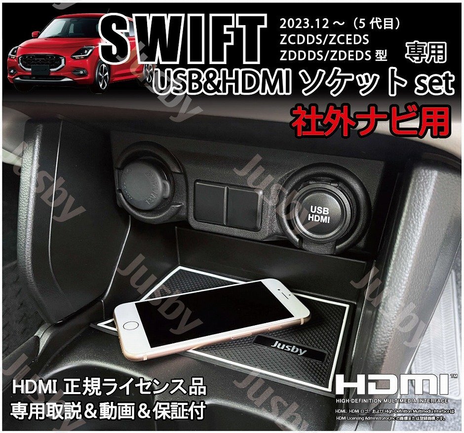 > 新型スイフト 5代目 社外ナビ用USB/HDMIソケット カーナビ HDMI入力 ミラーリング 充電 通信 HDMI USB アダプタ SWIFT SUZUKI