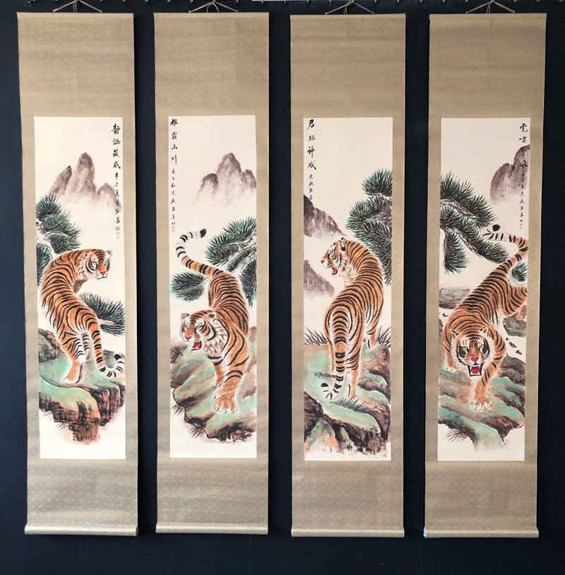 - 中国書画 掛軸 「雄霸山川]」 4枚セット 鑑賞 中国美術品 中堂画 装飾 縦軸 zh221