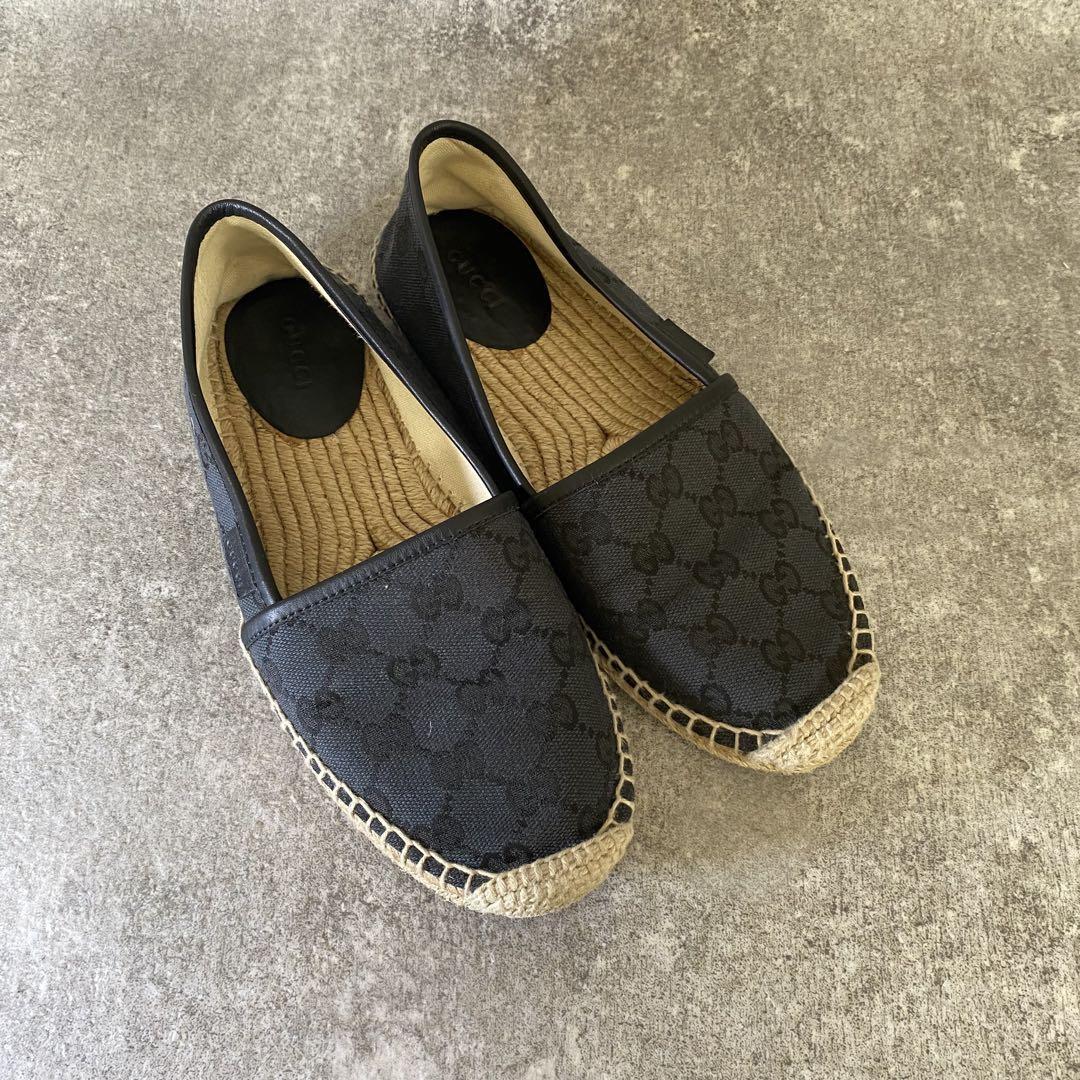 - GUCCI グッチ エスパドリーユ キャンバス スリッポン GG ブランドロゴ